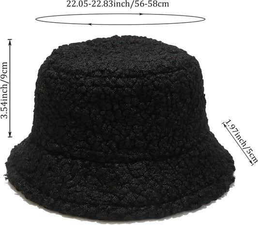 Women Fuzzy Sherpa Teddy Style Vintage Faux Fur Wool Bucket Hat